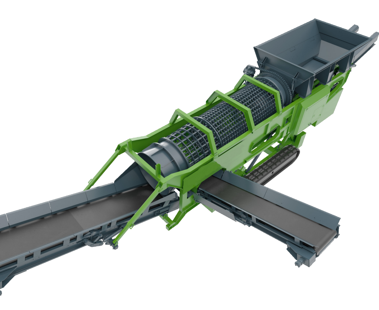 The Northrok 550t excels in material separation. It expertly screens topsoil, demolition waste, and aggregates with changeable screens and a rugged drum design.